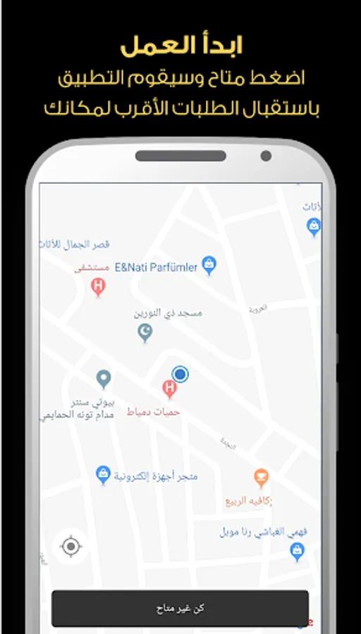 1. Press the ONLINE button to start the application and the application will receive the requests closest to your place