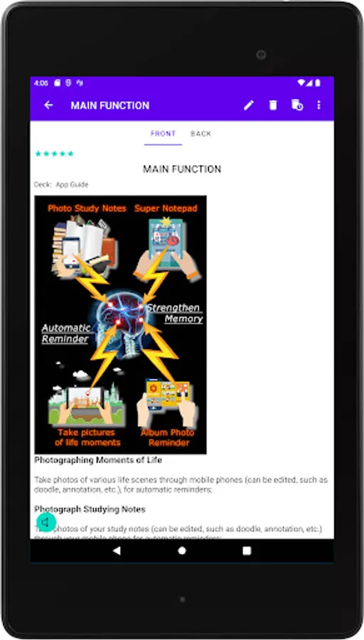 • Create your own Decks and Flashcards: You can modify any flashcard, such as taking notes, annotations, doodles on pictures, etc.