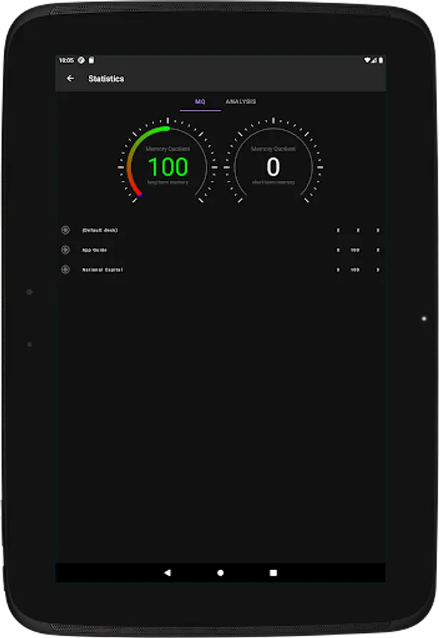 • Statistics such as Memory Quotient (MQ): Based on your long-term and short-term quotients, you can automatically detect and evaluate indicators such as brain health in real time