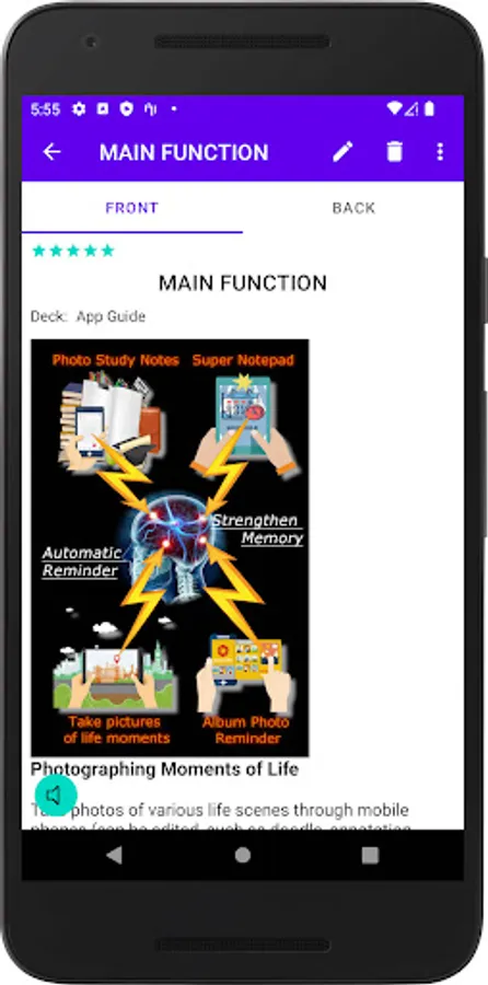 Make and intelligently manage memory card sets (Deck) and flashcard. Use Ebbinghaus Memory curve, and Spaced Repetition Algorithm to automatically remind. Use fragmented time to review and improve the memory efficiency of your brain. It is suitable for memory quiz test, English vocabulary flashcard learning.