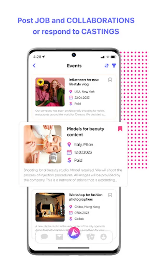 We've brought together models, well-known agencies, brands, dancers, actors, photographers, muah, Djs and producers from around the world into one international community. Search for talents or participate in castings!