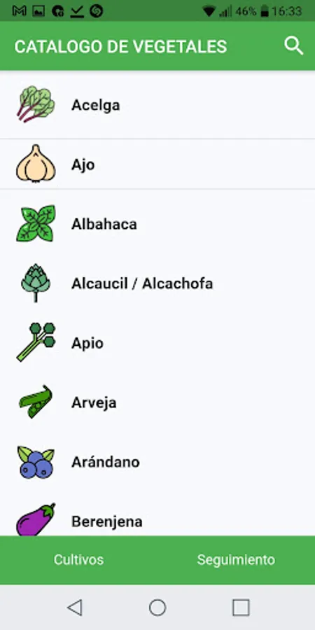 Fácilmente puedes acceder al listado de cultivos con todo lo que necesites saber sobre los mismos y así mejorar tus cosechas.