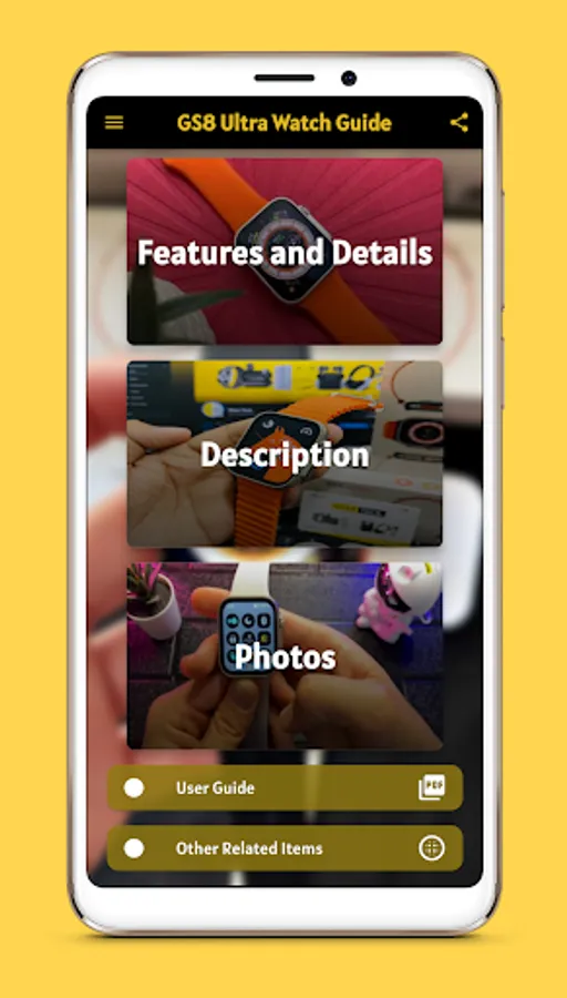 Content of gs8 ultra watch guide app :-