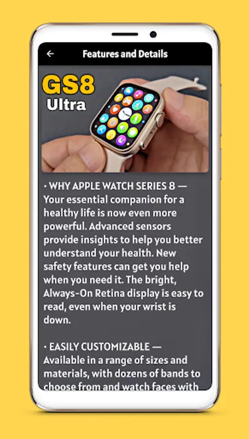Features of gs8 ultra watch guide app:-
