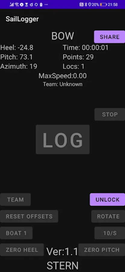 Phone is logging the GPS data, heel, pitch and heading of the boat.
