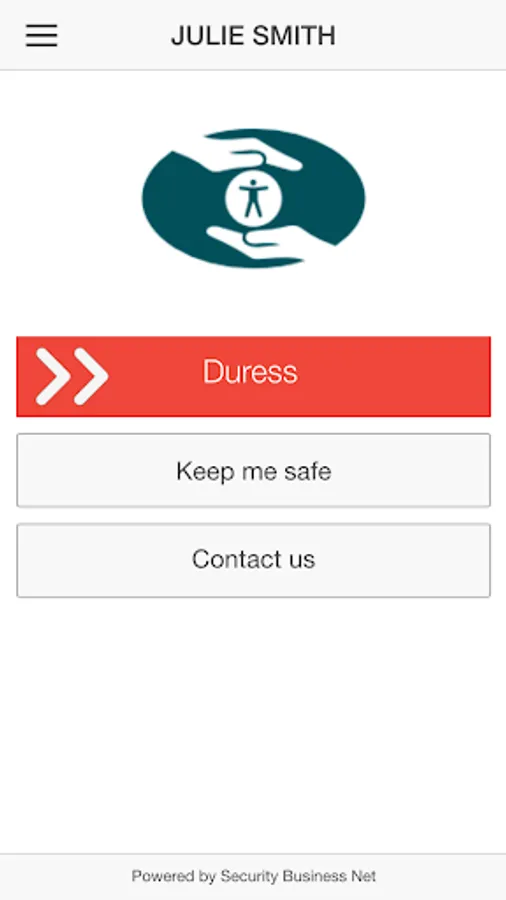The application can also be used outside of a duress situation, for example if the user wishes to be watched whilst walking to the car. In this instance, the user will press their finger on the Keep me safe button and continue to hold until they feel they are in a safe situation. If they release the button and do not stop an alarm being transmitted a duress signal will be sent to the central station.