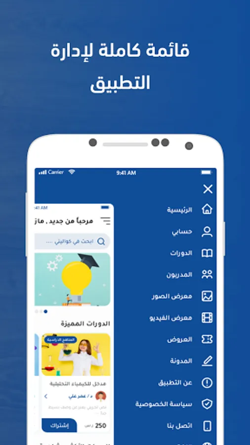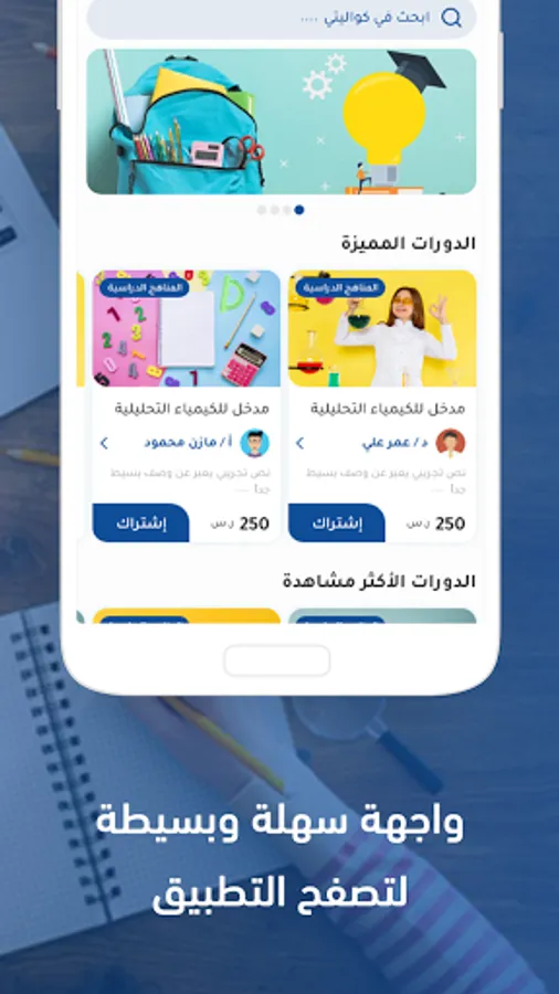 نقدم برامج تعليمية جذابة للطلاب من مرحلة التعليم ما قبل المدرسي إلى النعليم ما بعدالأساسي ، وكذلك برامج تدريبية لتطوير المهارات لكل الأعمار في مختلف العلوم والمعرفة ، ويمكنكم الاطلاع على الدروس في أي زمان و مكان بعد شراؤها مباشرة من التطبيق