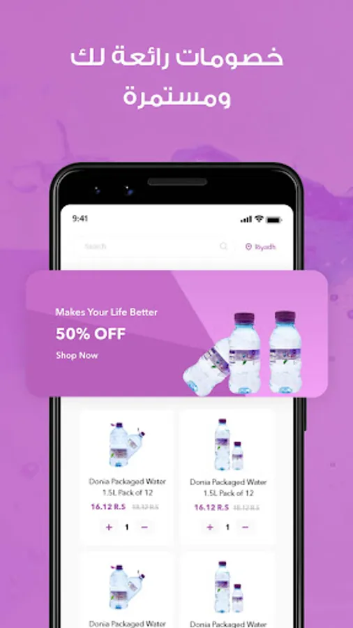 حمل تطبيق مياه دنيا سهولة الاستخدام و الطلب من التطبيق و توصيل سريع و اسعار تنافسية و يوصلك الطلب وين ما كنت