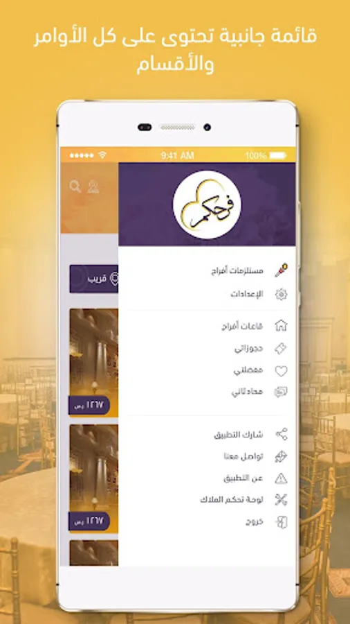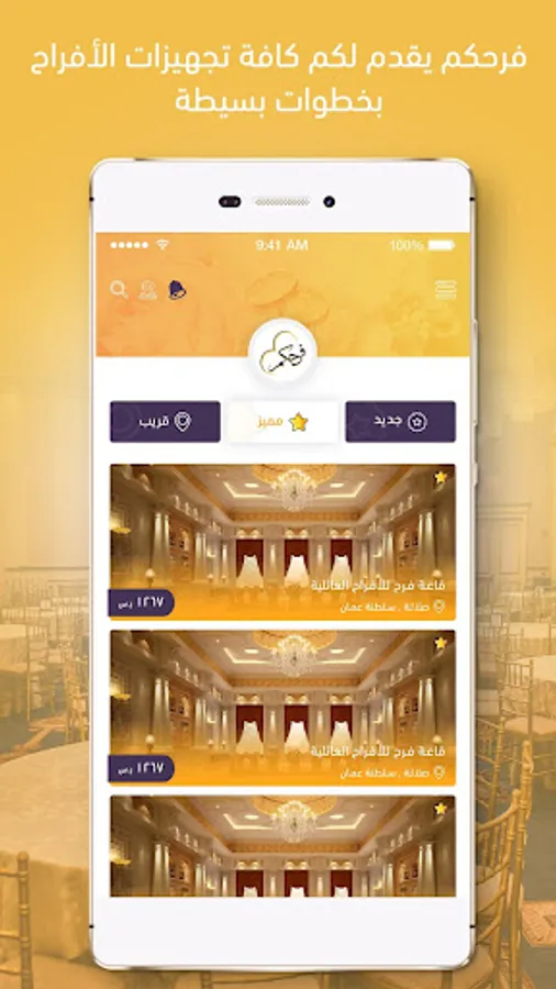 What distinguishes us more that the application Farahkm is the application dedicated to the halls and all the requirements of the celebrations and easier to follow all the halls of the Sultanate and you in your place and through your phone can make the final booking and capture your favorite history simply