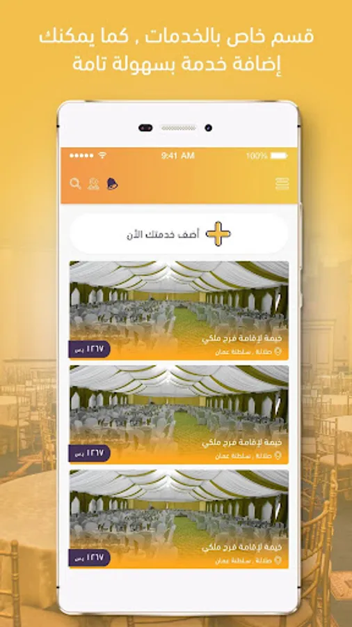 The owner of the hall and wedding accessories can add their services in both Arabic and English and add high quality images not exceeding 30 pictures currently.