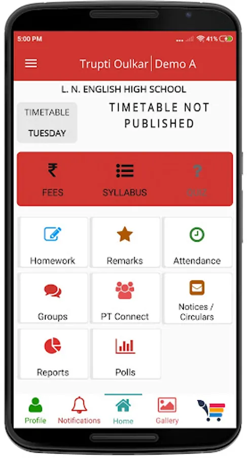 L.N English High School app, powered by SchoolStuff - a revolutionary app for schools, is developed to provide seamless communication between Parents, Teachers and principal along with helping them efficiently organize their day to day school related activities like