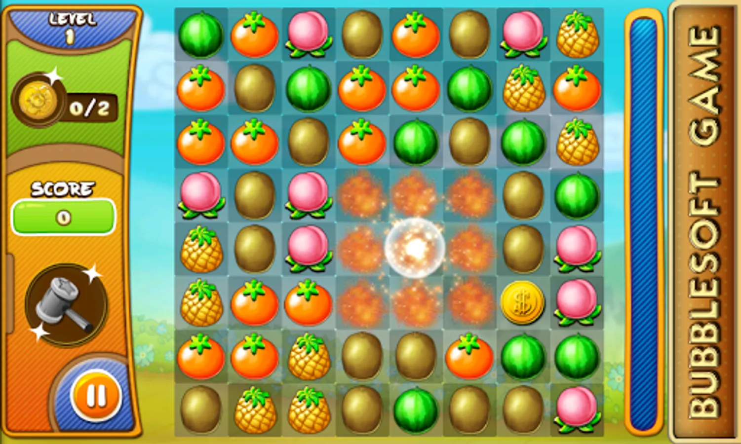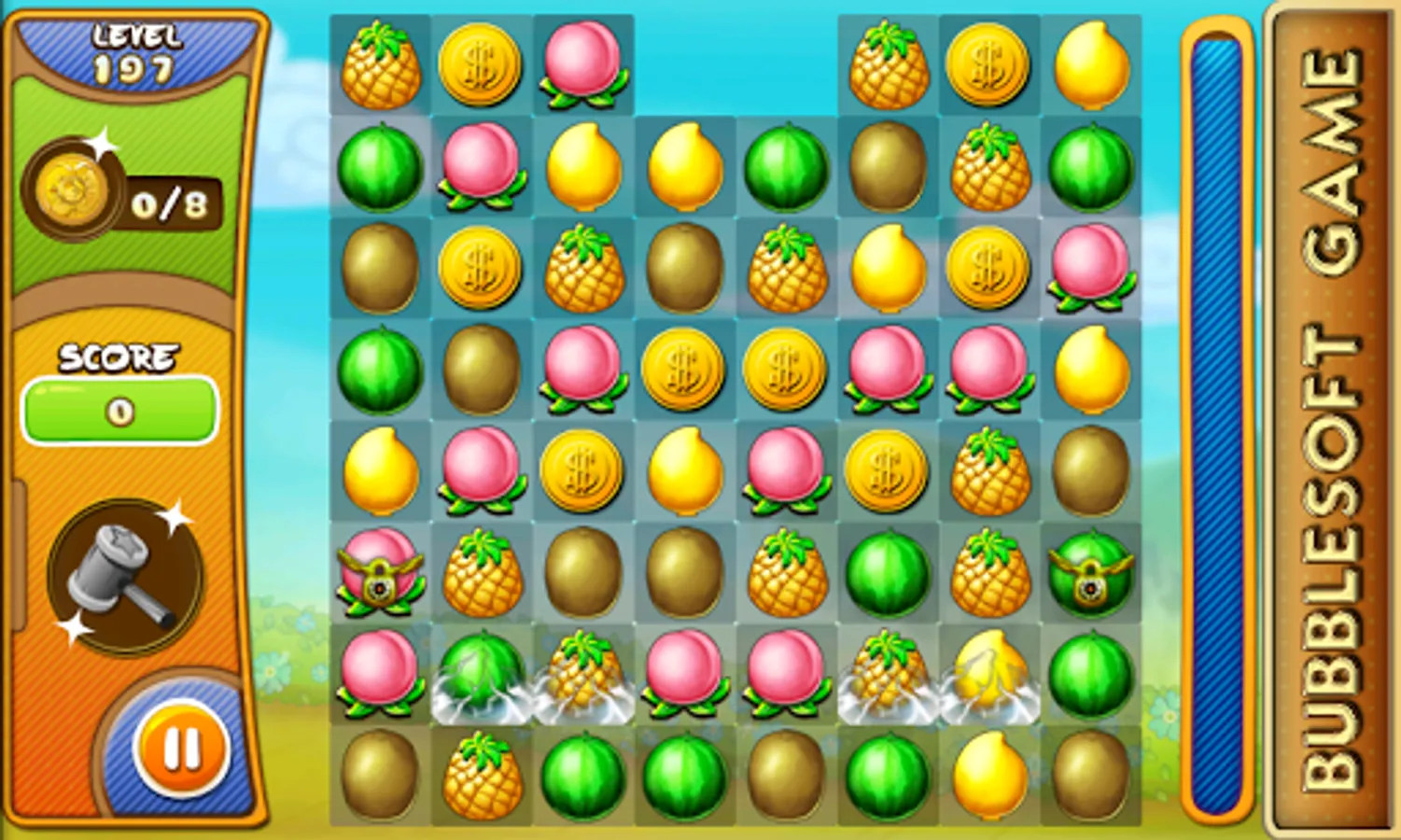 In Fruit Break,You need to switch the adjacent sweet fruits,make the coins fall,then collect them,Your target is to collect all of the coins to pass the levels.You will get a totally fresh new experience. Enjoy the fantastic adventure in this game.