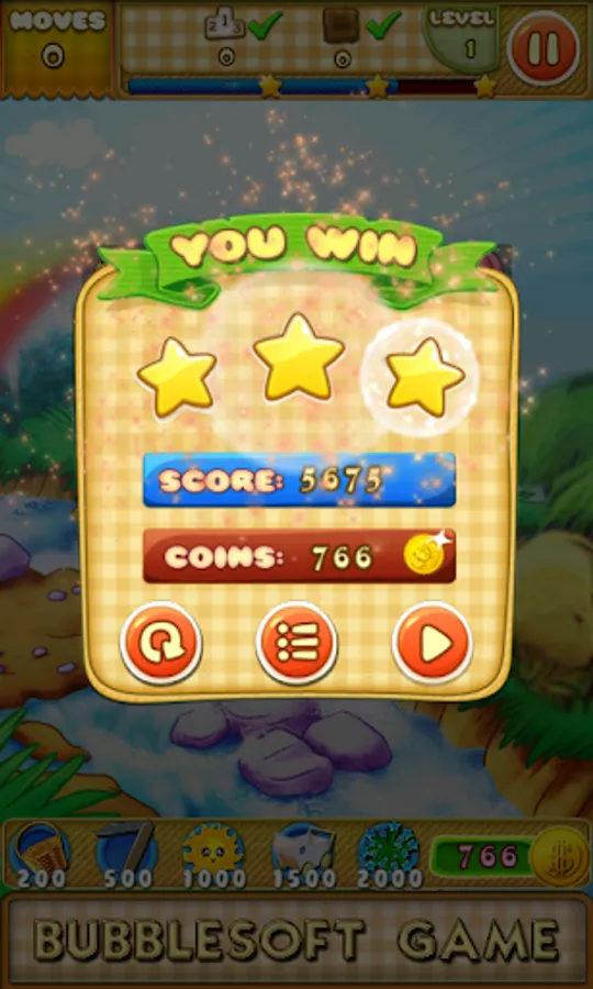 The props at the bottom,can help you win the game quickly.But it needs coins to use the props.Win one level but do not run out of the moves,you can collect coins.