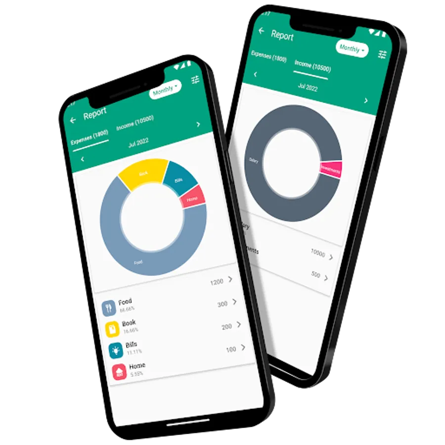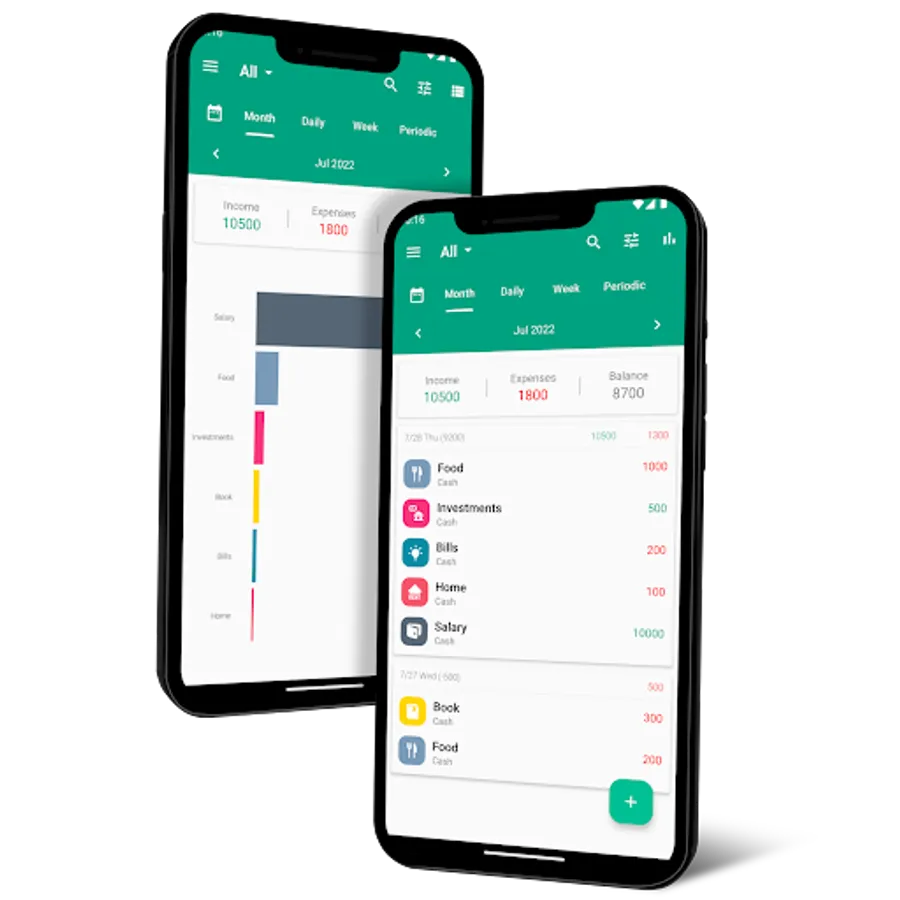- You can filter easily by category eg: Expenses/Income, Month, Week, Year