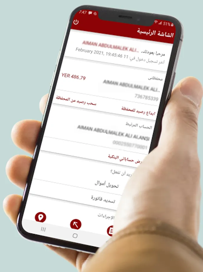 - تحويل الارصدة من الحساب البنكي الى المحفظة والعكس
