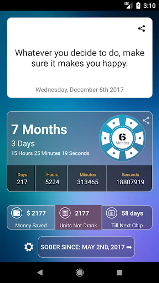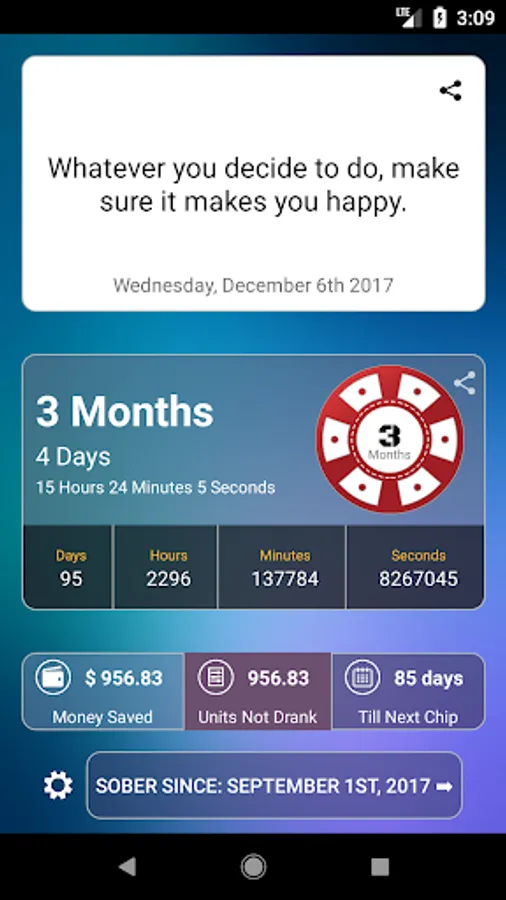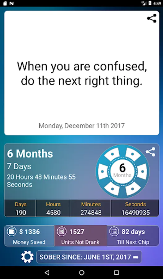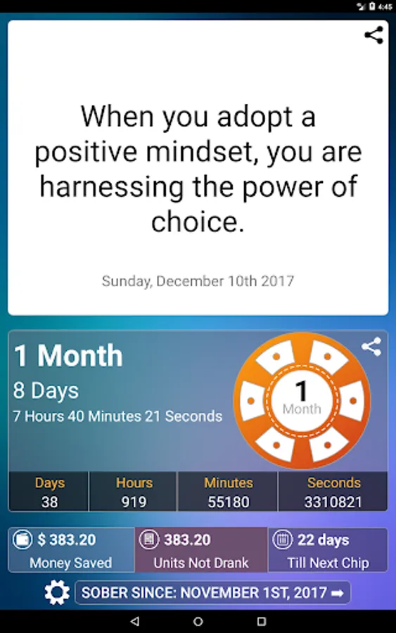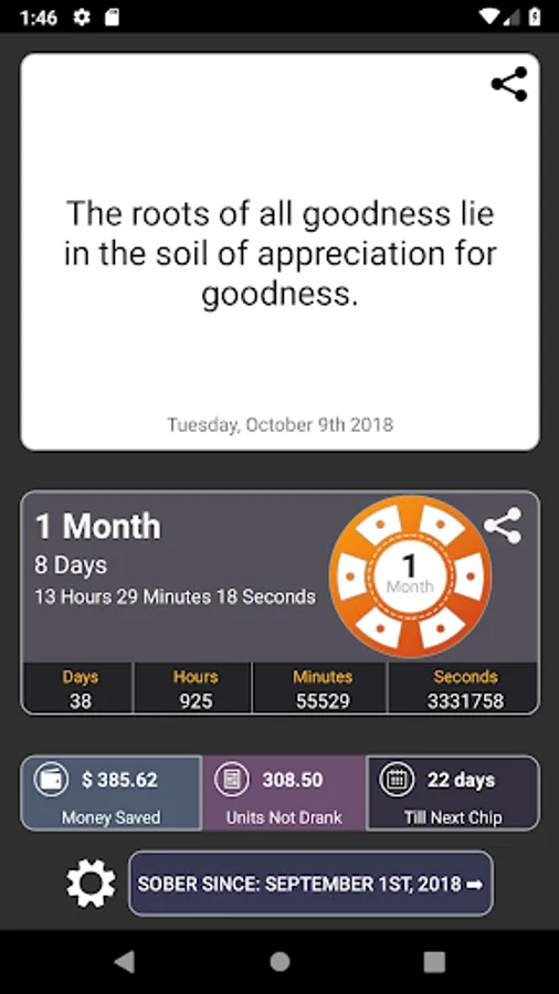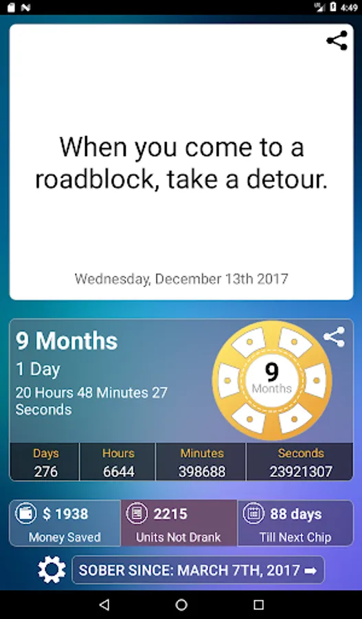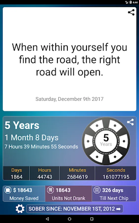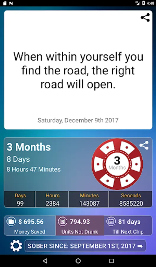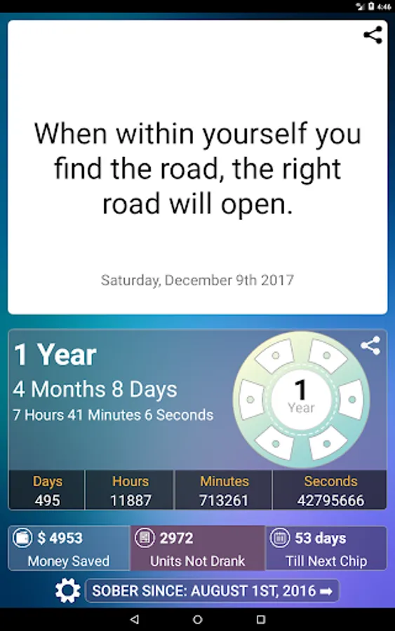 Keep track of your sobriety date and the number of days you are sober with this simple free app!