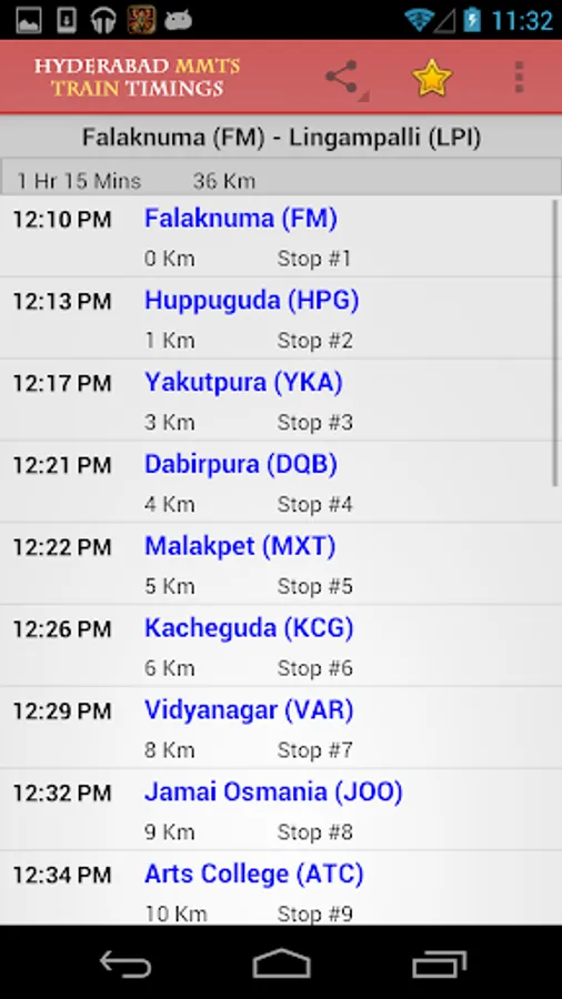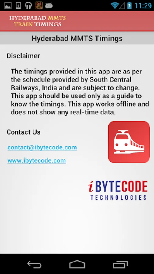 Hyderabad MMTS Suburban Train Timings for Android Phones and Tablets