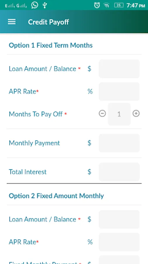 - Loan Calculator to determine how much time it takes with fixed payment or fixed months