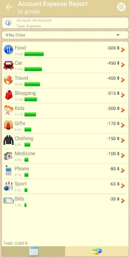- Multiple accounts to track your spending across different bank accounts or credit cards