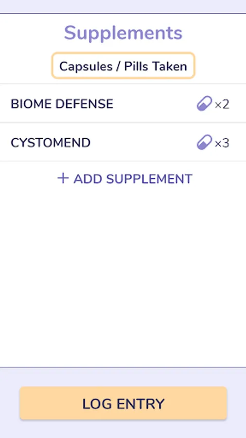 •Supplements – The American Urology Association encourages patients to try OTC supplements in their IC and OAB treatment guidelines. You can easily record any supplements or therapies that you are trying.