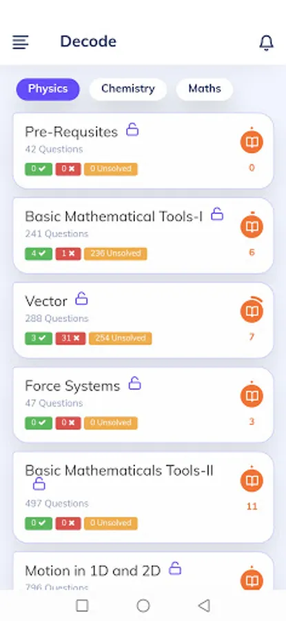 By tapping on a specific application, you can quickly access more detailed information including you solving record, test analysis, learning videos and graded question bank. Competitive Exams is never easy, but ICAD Digital can help you by providing easily accessible tools and the analysed information you need to reach your goal with ease.
