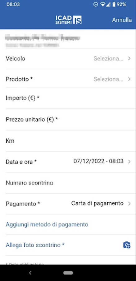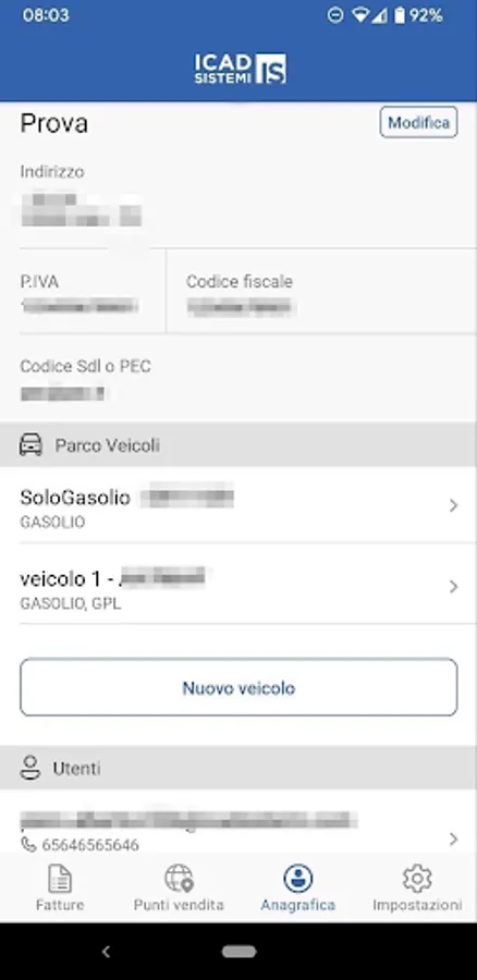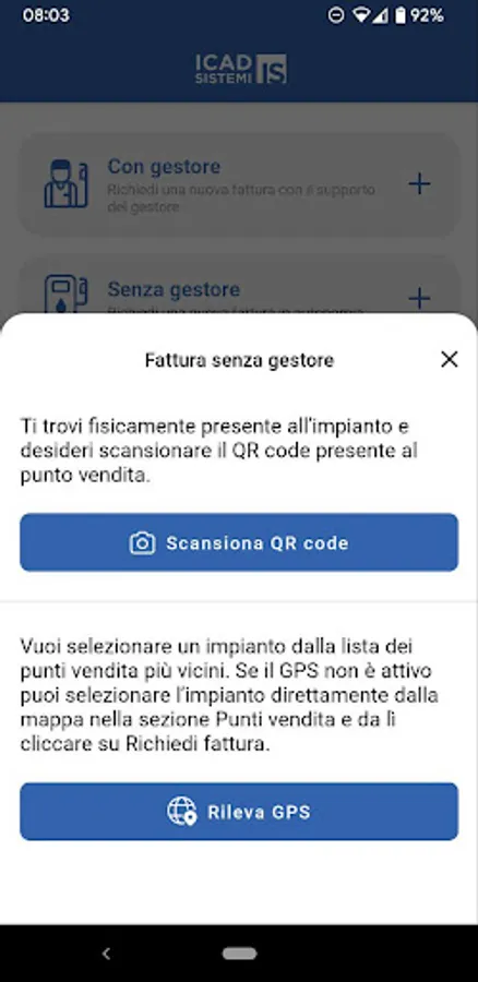 The user, after uploading his company data, can possibly create a vehicle fleet and a series of users for his employees. This app then allows you to enter data for an unattended dispensing or to show a QR code to the manager when this is present.