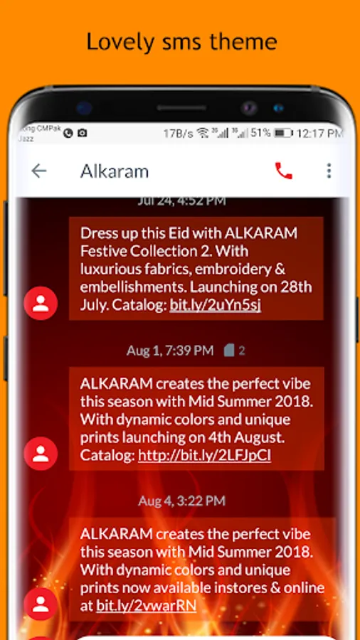 The New Fire theme is an easy and personalized way to send changes the dull look of your theme looks. Download now our New Fire theme and feel free to give us a rate. Enjoy New Fire theme at every tap on your SMS layout!