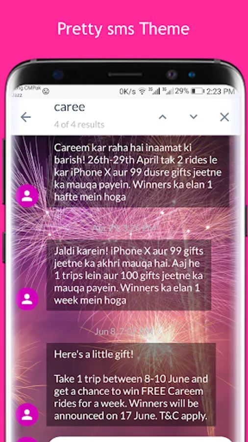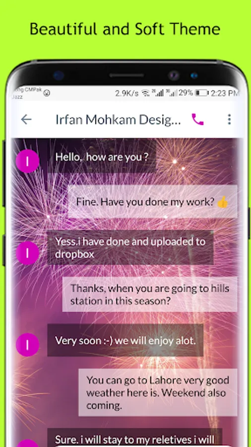 Fireworks SMS theme is the latest free theme for Samsung, Huawei and any other brands of Android mobile. The Fireworks SMS theme is specially designed for mobile SMS themes fanatics, with fireworks wallpapers, giving your phone a smooth design which is near perfection! Download the Fireworks SMS theme and tap install to have a mobile theme which is smoother and uses less power.