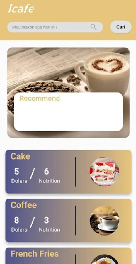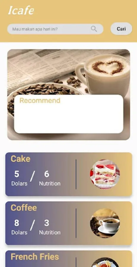 This application is for ordering all types of food, but is only available at cafes that have been registered and are already available in the application