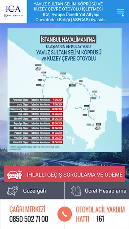 Description: You can find information about the ICA which builds and operates the Yavuz Sultan Selim Bridge and the Northern Environmental Motorway.