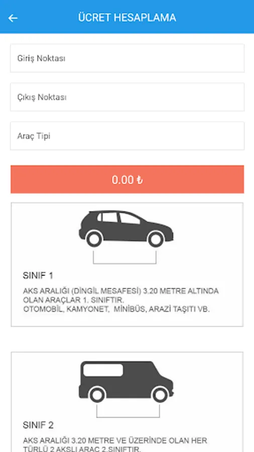 Fare Calculation: You can find out the fee you will pay according to your vehicle class and the distance you are traveling in the Fee Calculation section.