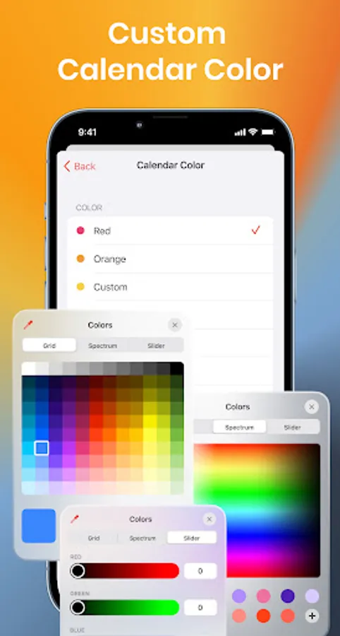- Custom color coding: Custom color-code your events for easy tracking. Use predefined colors or make up your own color.
