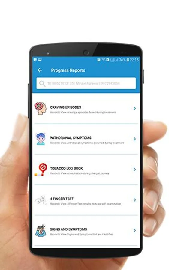 Innovative Cancer Care Tobacco Wellness App provides a tobacco user step by step guide for de-addiction aided by a counselor or a doctor. Users can assess Will Power Index, Addiction Level and Type of Dependence with ease. Based on the assessed level, the appropriate treatment process can be chosen for treatment. An interactive and engaging application which keeps the tobacco addict engaged during his/her quit journey.