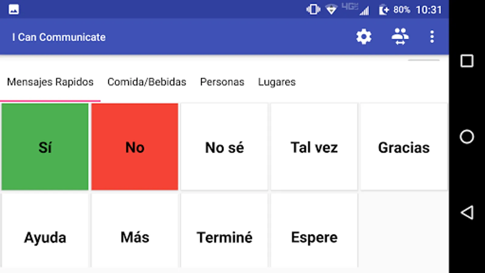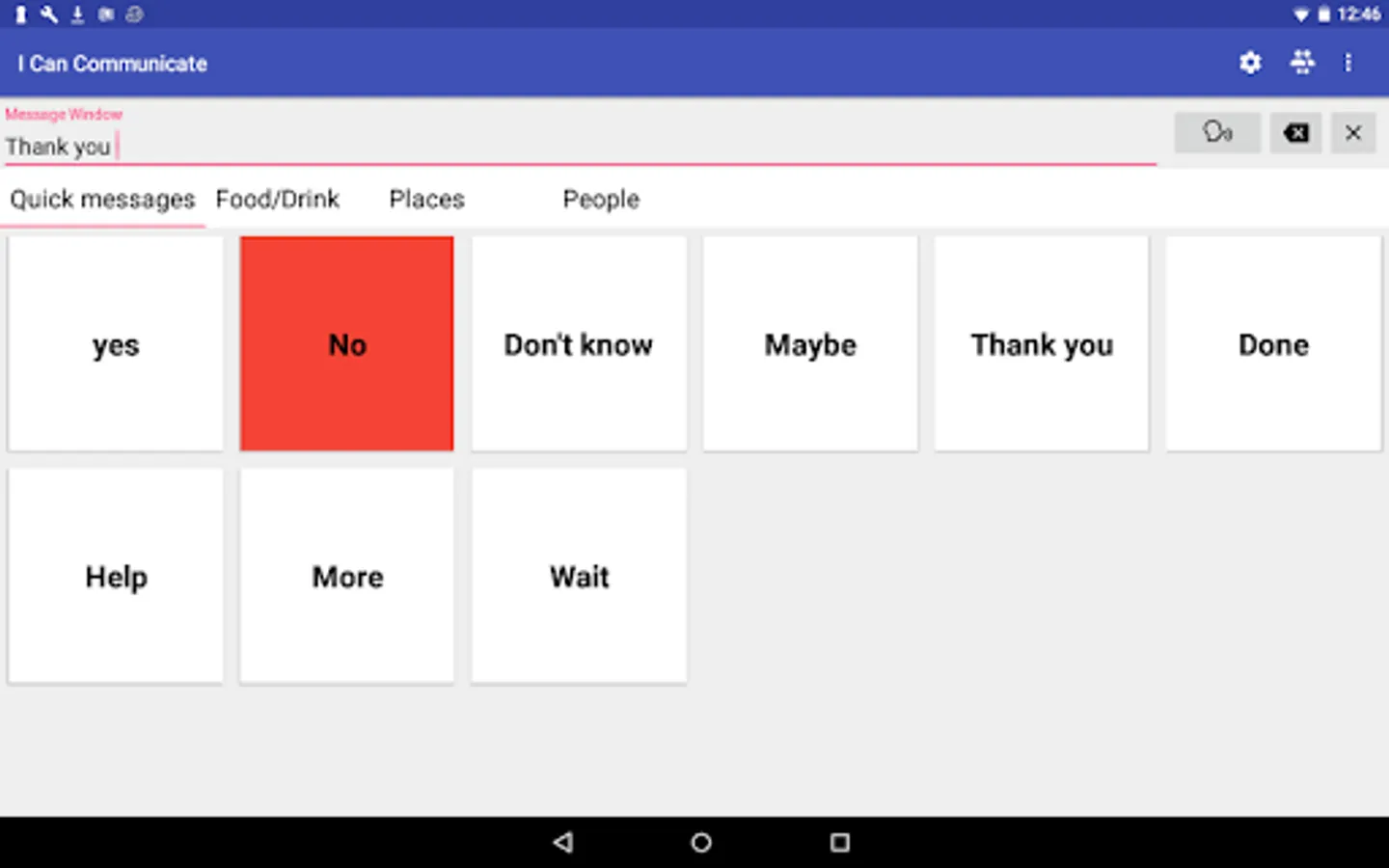 I Can Communicate! is a FREE app for individuals who have augmentative and alternative communication needs. Users have the option of typing our their messages as well as utilize buttons for pre-programmed messages. English and Spanish text-to-speech output is currently available.