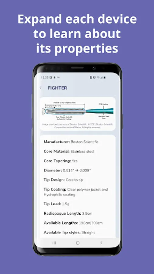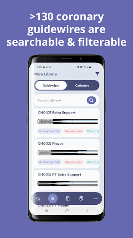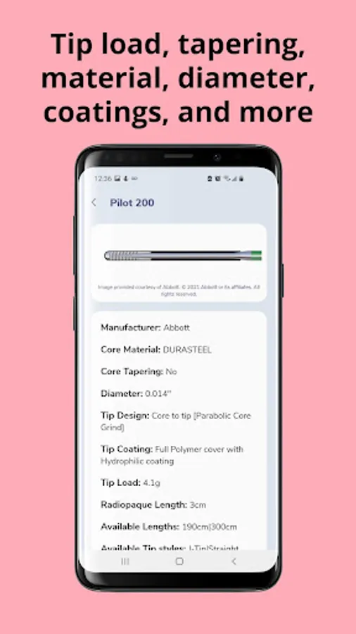 GuidewireAID has a number of features valuable to new and veteran interventionalists, nurses, technicians, and industry personnel. An in-depth introduction to coronary guidewires brings users up to speed with terminology such as tip load and coatings. A large selection of case reviews shows a variety of complex cases, and selection recommendations and an expansive wire library can help find alternative wires based on similar properties.