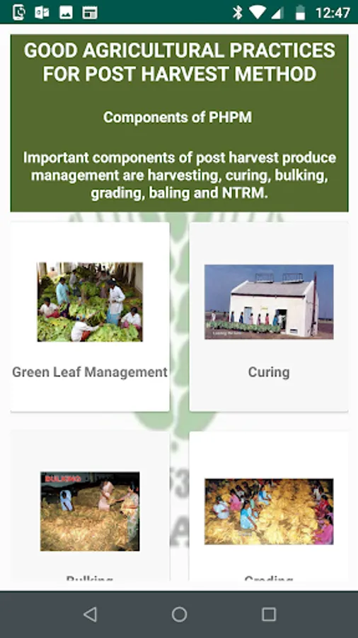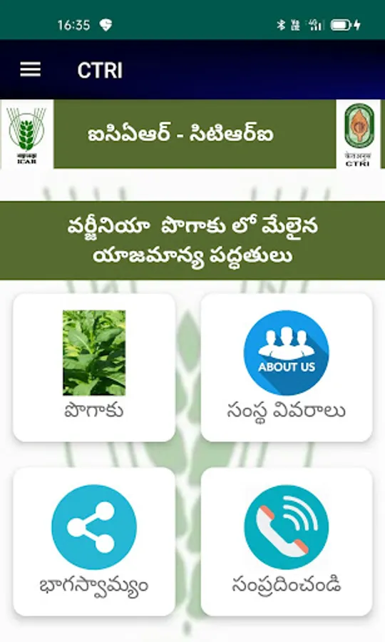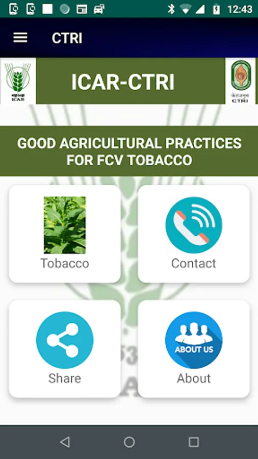 ICAR-Central Tobacco Research Institute established in 1947 has done yeomen service to farming community through technology backstopping on myriad aspects of tobacco cultivation. In the present context of utilizing ICT tools for timely and effective communication of needful agricultural information, ICAR-CTRI developed Mobile App for providing technological support to stake holders for improving the yield and quality of FCV tobacco.