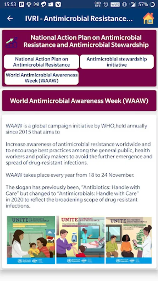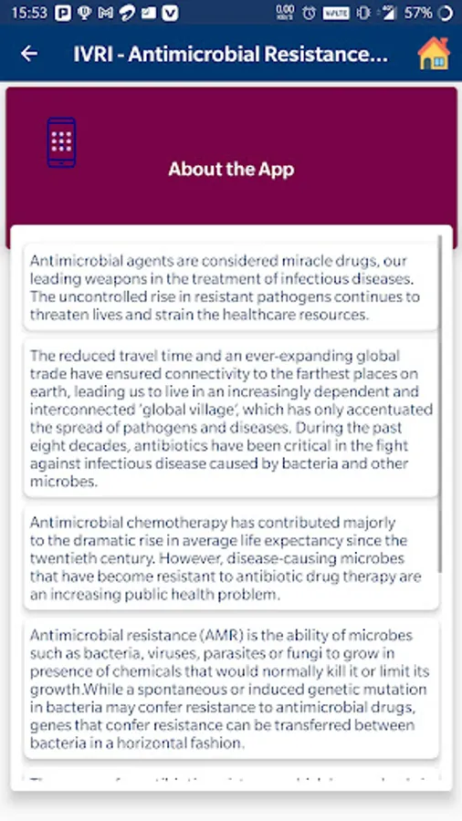 This app attempts to shed light on the burning problem of AMR and highlight the various mechanisms through which AMR is acquired. Further, the app intends to educate various stakeholders and general public regarding the AMR problem with the ultimate aim of creating awareness.
