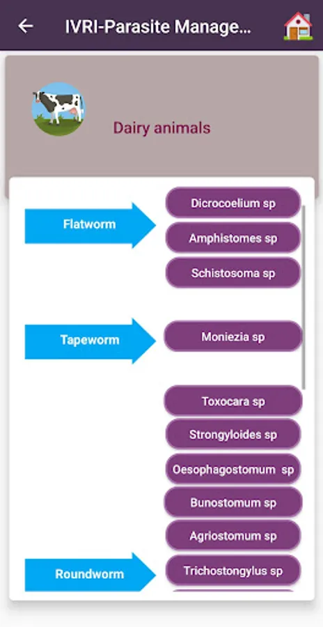 The application provides concrete knowledge of parasitic diseases in various species of domesticated and wild animals, life cycle of the parasite, the organ system involved,
