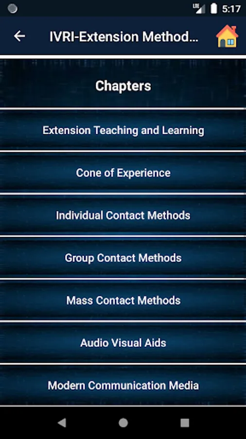 The Extension Teaching Methods and AV Aids Tutorial App, designed and developed by ICAR-IVRI, Izatnagar, UP and IASRI, New Delhi is basically a Multiple Choice Questions (MCQ) based Drill and Practice educational learning tool targeted to impart knowledge and skills to students in the various areas of Extension Teaching Methods and Audio Visual Aids. The app will be useful for the students enrolled in UG and PG degree programmes in the Extension Education discipline in various SAU / SVU / CAU, Deemed Universities and colleges of Agriculture, Veterinary, Fishery and Home sciences across the country. It will also be useful for students preparing for various competitive exams and students enrolled in related disciplines.