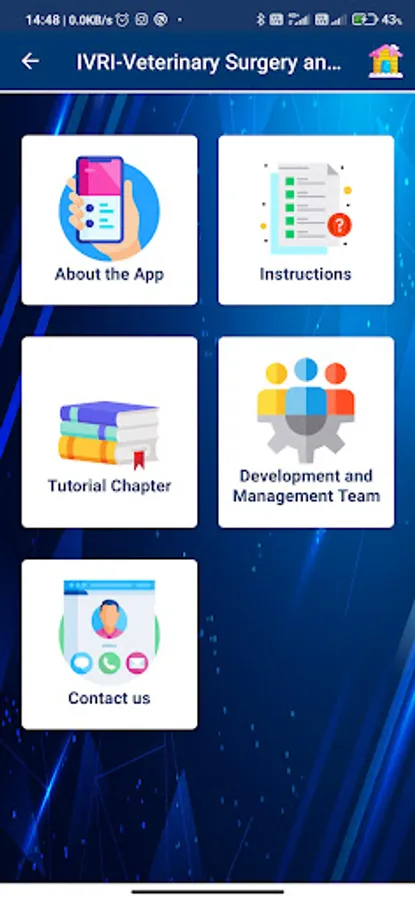 The IVRI- Surgery and Surgery Tutorial App, designed and developed by ICAR-IVRI, Izatnagar, UP, and IASRI, New Delhi is basically a Multiple Choice Questions (MCQ) based Drill and Practice educational learning tool targeted to impart knowledge and skills to students in the area of Surgery and Radiology.