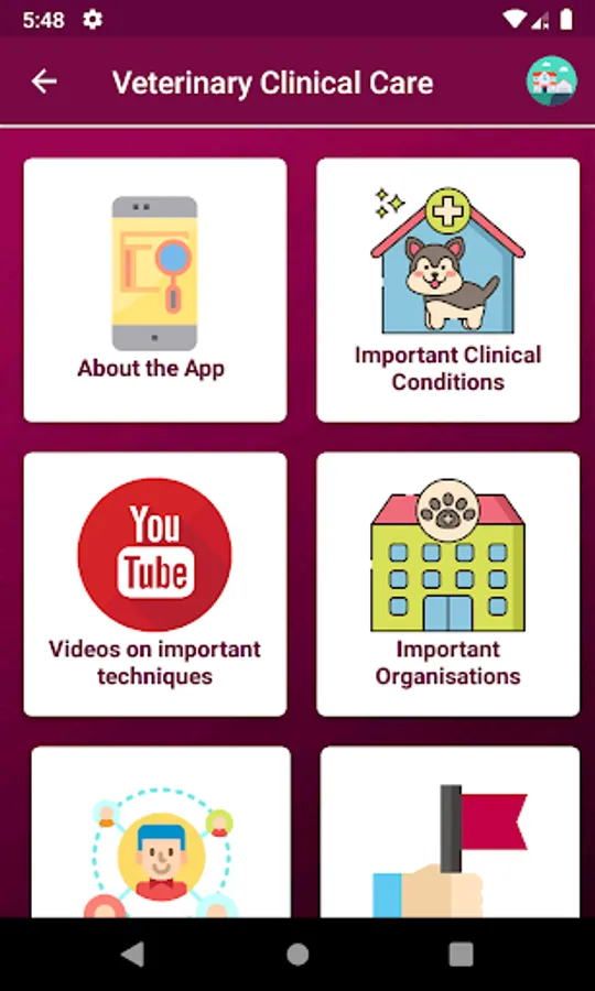 are detailed. Educational videos on important surgical procedures like Tube Cystostomy, External Skeletal Fixation etc have been included in the App for enhancing surgical skills in some advance surgeries. The App also contains links to various important organizations dealing with animal health.
