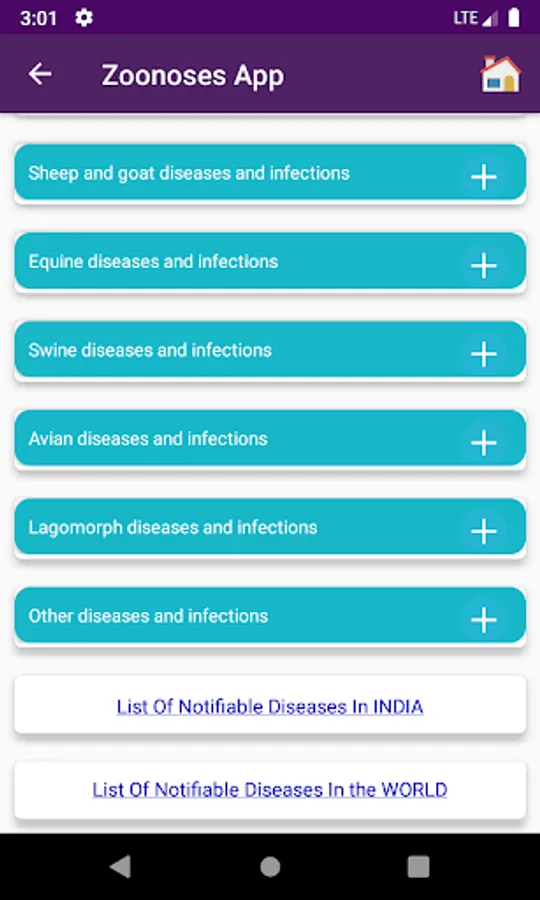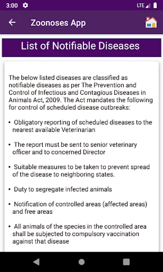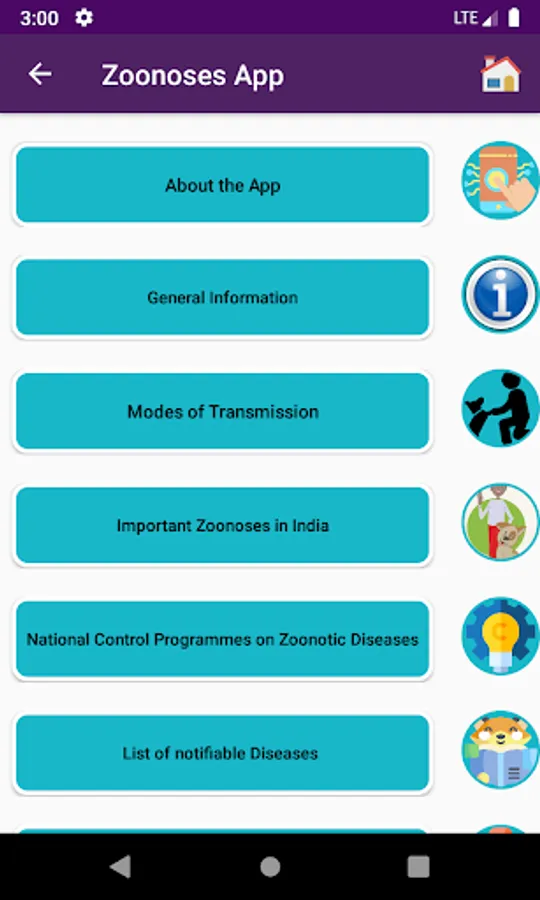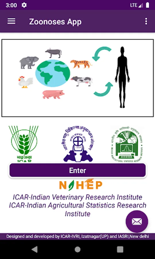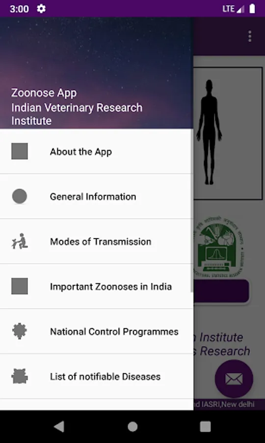 IVRI-Zoonoses App designed and developed by ICAR-IVRI, Izatnagar & IASRI, New Delhi aims at providing basic information about important zoonotic infections including their modes of transmission, symptoms, prevention and control measures. The list of national disease control programmes w.r.t. zoonotic diseases has also been included along with the list of notifiable diseases in animals.