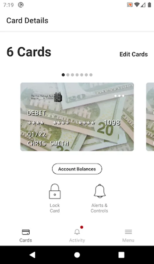Protect your finances with this free app for The First National Bank in Trinidad debit cardholders. Use this app in addition to iBank Mobile Banking app to get the most benefit from your account.