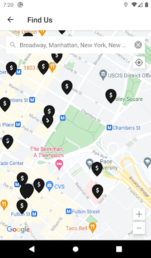 The My Location control can restrict transactions to merchants located within a certain range of your location (using your phone’s GPS); transactions requested outside of the specified range can be declined. The My Region control uses city, state, or zip code on an expandable interactive map; transactions requested by merchants outside of a specific region can be declined.