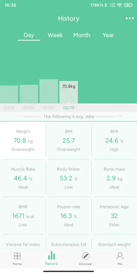 Connected to your mobile phone by bluetooth4.0,your weight data, health status and BMI value calculated by your weight and height will display on your app. We care your figure with daily record every minutes.