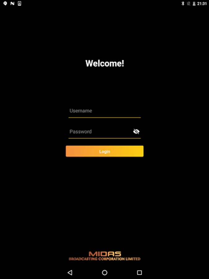 MidasTV application requires registration and login.
