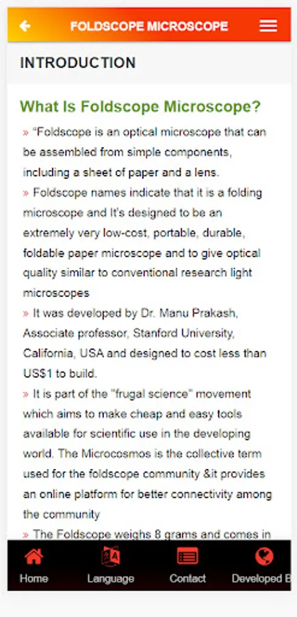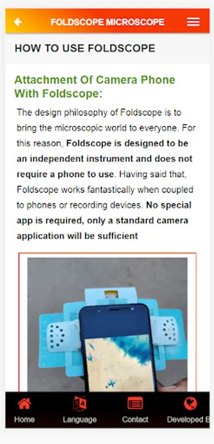 Foldscope is an optical microscope that can be assembled from simple components, including a sheet of paper and a lens. The larger things like insects, fabrics, pollens, and tissues can be also observed very easily under Foldscope.