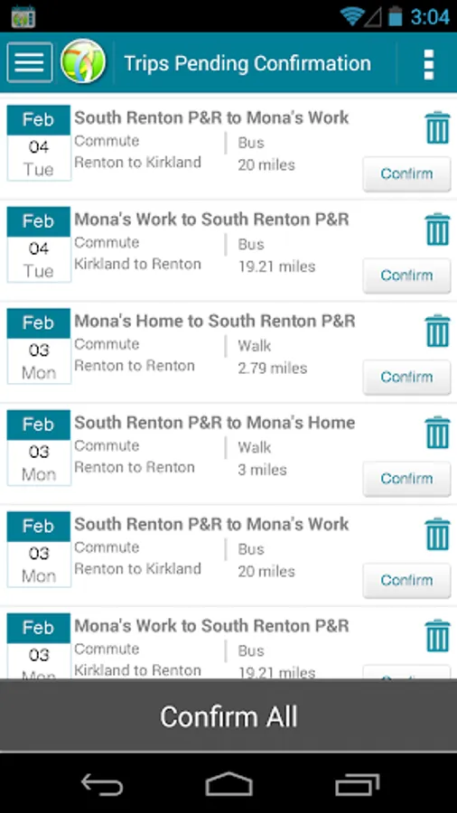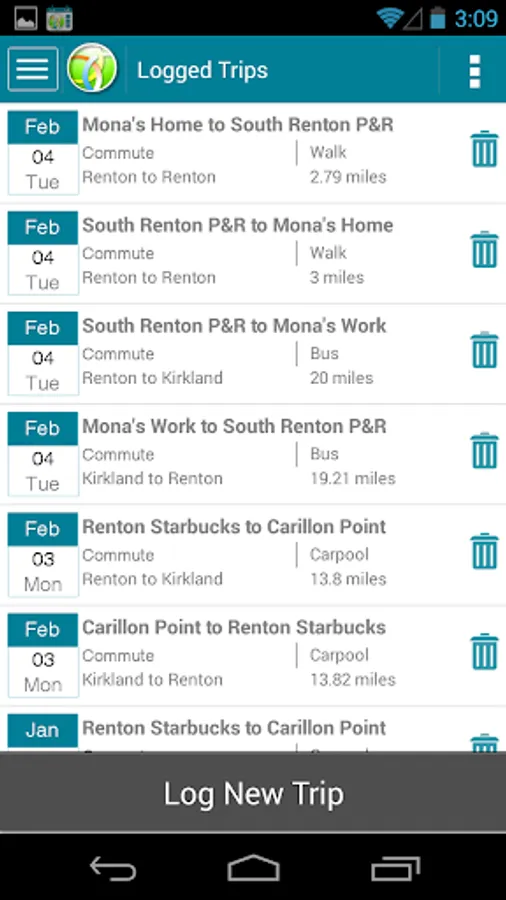 - View trips logged in your calendar