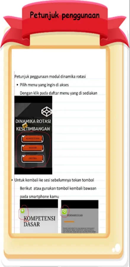 module : ROTATION DYNAMICS is an independent learning device module that is accessed without an internet connection and contains media regarding the learning of rotational dynamics material based on the 2017 revised K-13 curriculum Kemdikbud syllabus