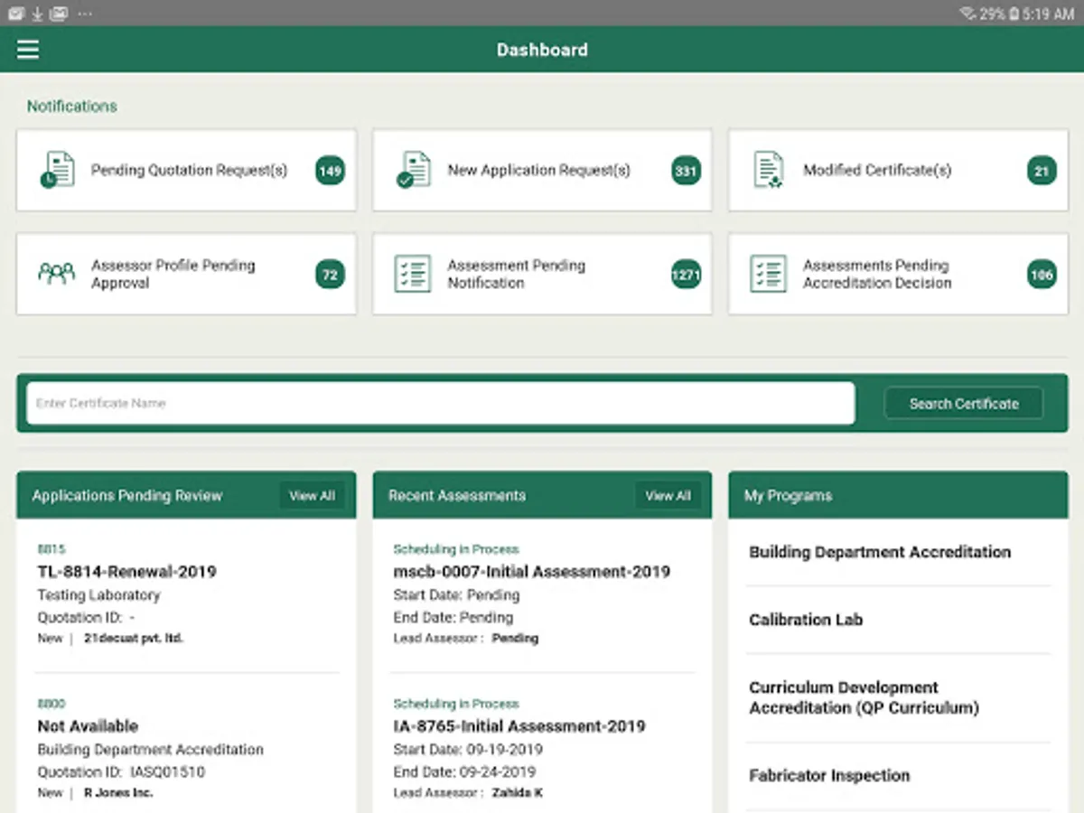 IAS Full Time Staff can receive notifications about the programs they manage/coordinate, assessment related question. Staff can view applications, quotes, Certificates and assigned assessments all from the palm of their hand.